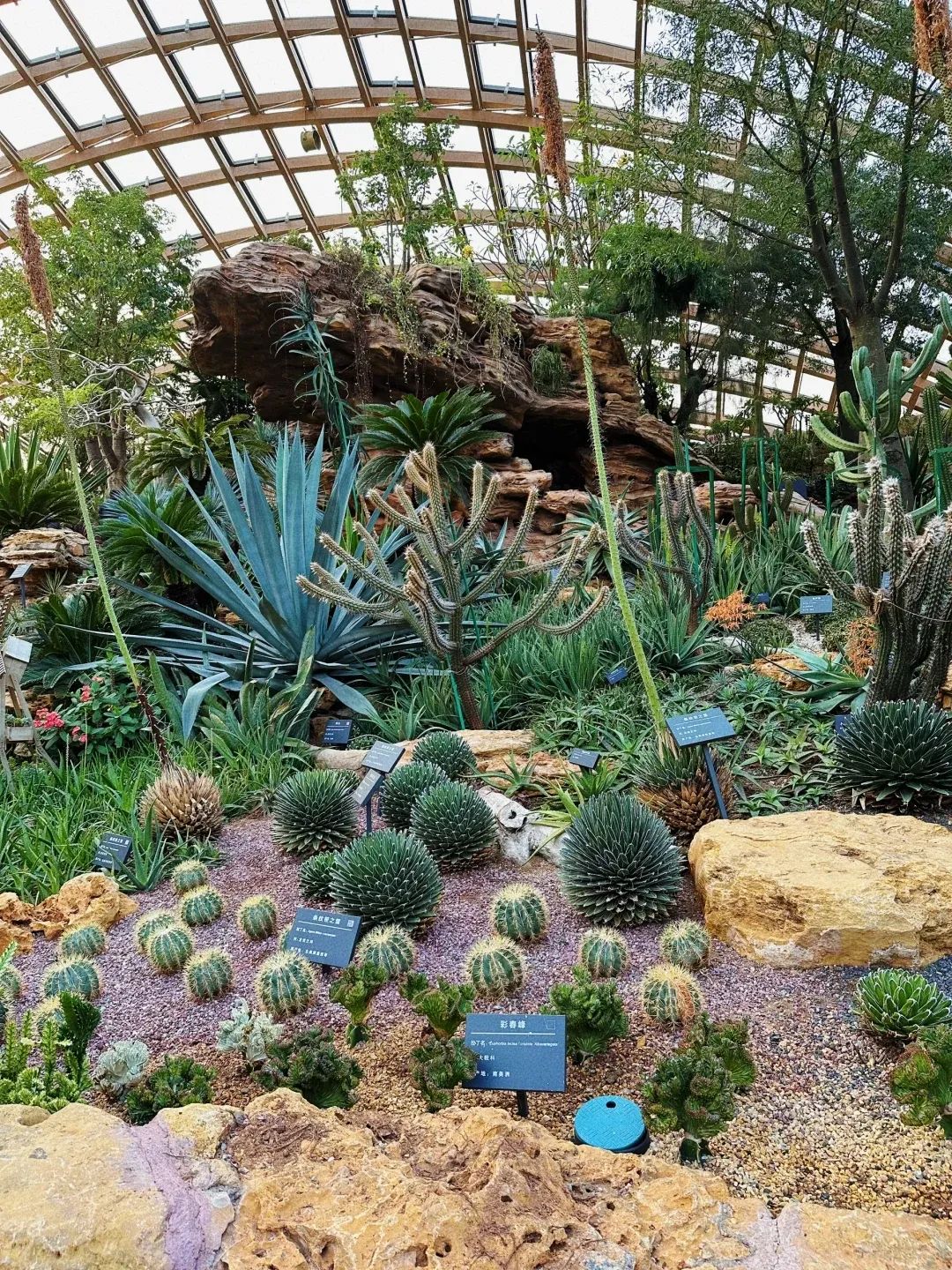 沙生植物馆里奇形怪状的大树、千奇百怪的仙人掌、好似画卷的多肉植物墙,则让人体验到了别开生面的沙漠风情。