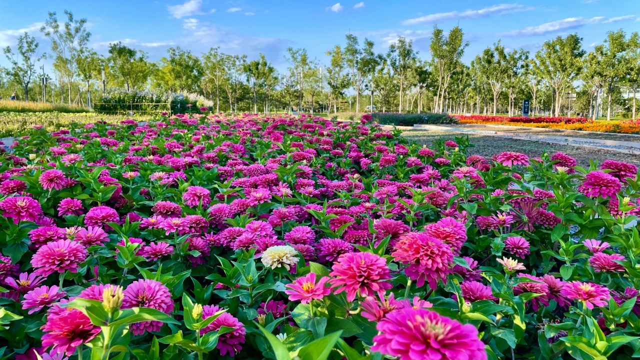 鲜花盛开之时,广阔而空旷的植物园就抹上了四季的艳色。