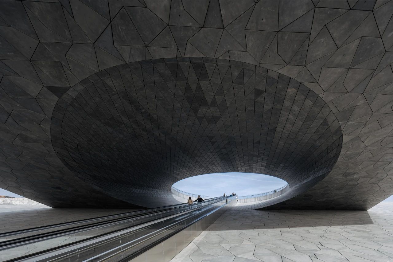 长达64米的它,往上延伸向一个圆洞,就好像电影《心灵奇旅》里去往地球之门的投胎电梯。