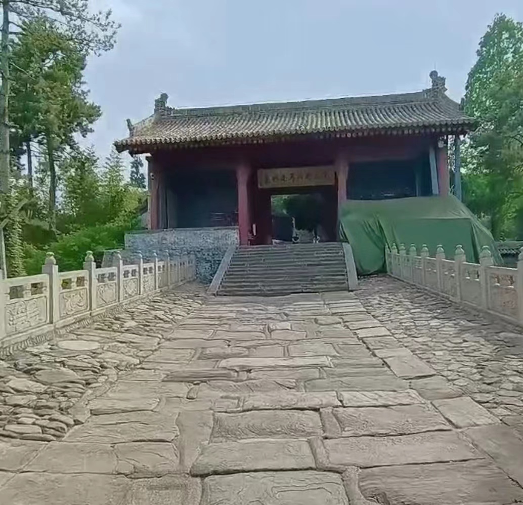图片:走过芝秀桥,看到这块标志牌。据祠内碑刻记载,祠墓始建于西晋永嘉四年(310),北宋宣和七年(1125)增修扩建,元、明、清均有修葺。坐西朝东,自东而西依次由祠门、献殿、寝殿和道房等组成。墓位于该祠寝殿后,墓冢为圆形,穹庐形顶,青砖包砌,高2.15米,周长13.19米,冢上有古柏一株。祠外踏步、坡道分布有木牌坊、山门等建筑。