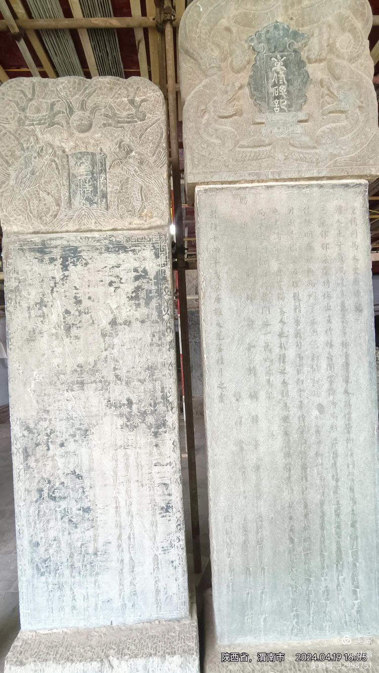 图片:由于殿内整修,不能如愿所拍,且大部分墓碑年代久远,不法辨明字迹,唯这两块能看出:右为乾隆年所立,左为光绪年所立