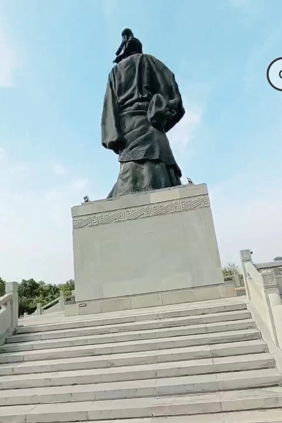图片:耸立于祭拜大道西尽头的司马迁铜像,作者绕其一周录了下来,看上去,要比电视剧《汉武大帝》里扮演者稍丰满些
