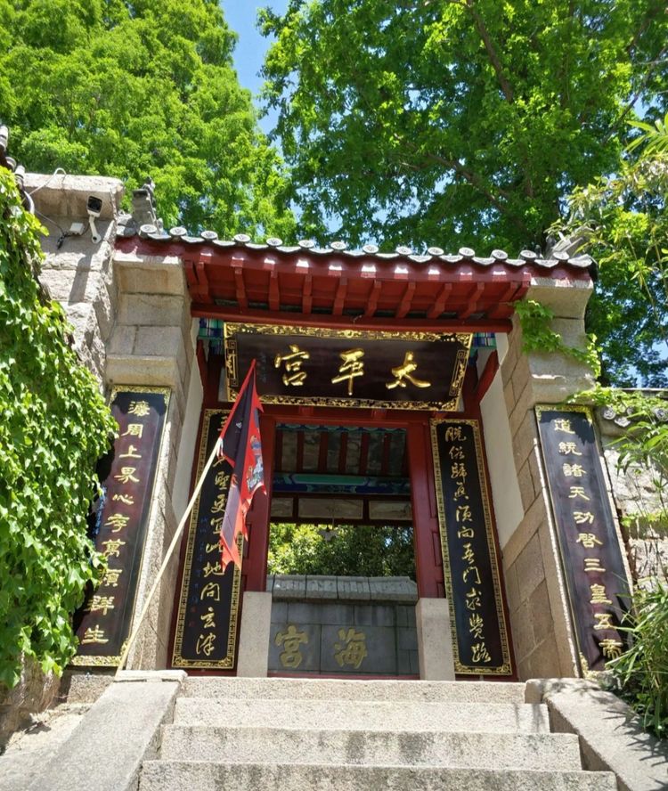 太平宫,又名太平兴国院,地处崂山东部仰口湾畔的上苑山南坡,始建于北宋建隆二年(961年),为道教全真道华山派宫观。