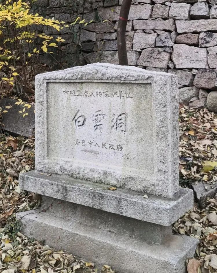 抗战胜利后,时任青岛市市长李先良在白云洞山门外岩壁上题字“白云为家”。