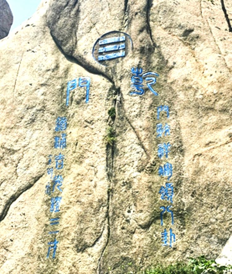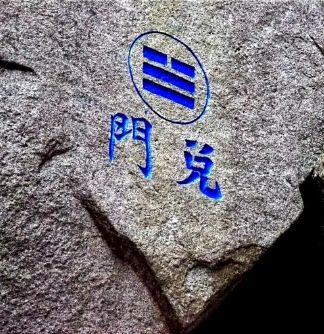位于巨峰的正南方,代表火卦,与朱雀石相依,对土命的人有益。离门旁的对联是“乾坤知造化登易学堂奥瞻视无碍,天地任作为入数闲门庭悟法有方”。