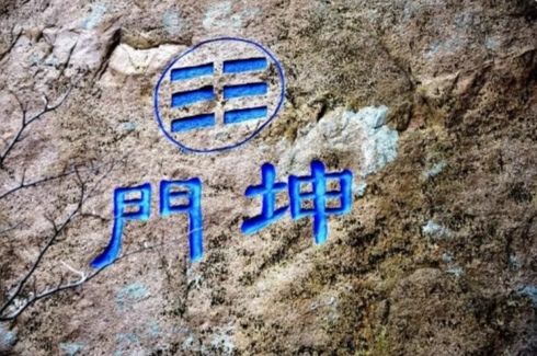 位于巨峰的西南方,代表地卦,是一扇天然的石门。坤门的楹联是“人居坤位目含章,身遇斯门直方大”,教导人们要积善行德。