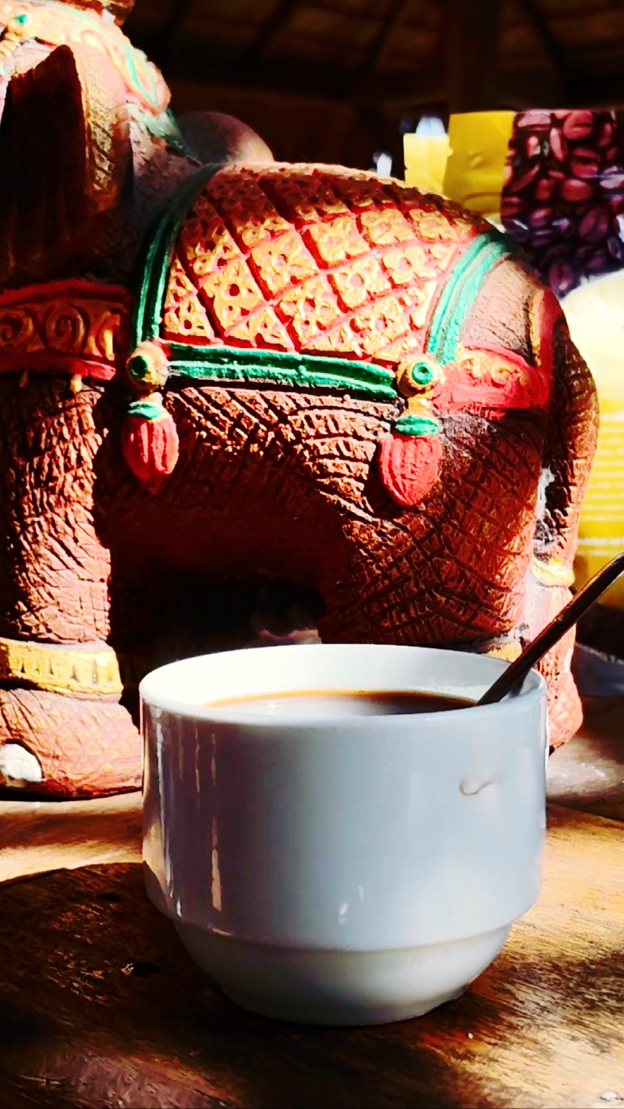 导游带我们来的这个地方像是一座庄园,名字我记不得了。庄主介绍他是华裔老挝人,战争年代爷爷辈来到老挝。我记得历史上有段记录,战争年代有一支国民党军队逃到金三角,不知庄主是否他们的后代。庄主讲解很精彩,详细介绍了老挝咖啡的生长过程及丛林里的宝藏,还特别介绍了大象的生活习俗,我才知道了,原来,西双版纳的大象,也是从老挝过去的。他又把我们带到展柜台,里面有象牙制作的首饰等。这些饰品美极了,尤其象牙的项琏和手镯,更是美仑美奂,当然价值不菲。导游说这里卖的是真货,因为老挝人不会造假。