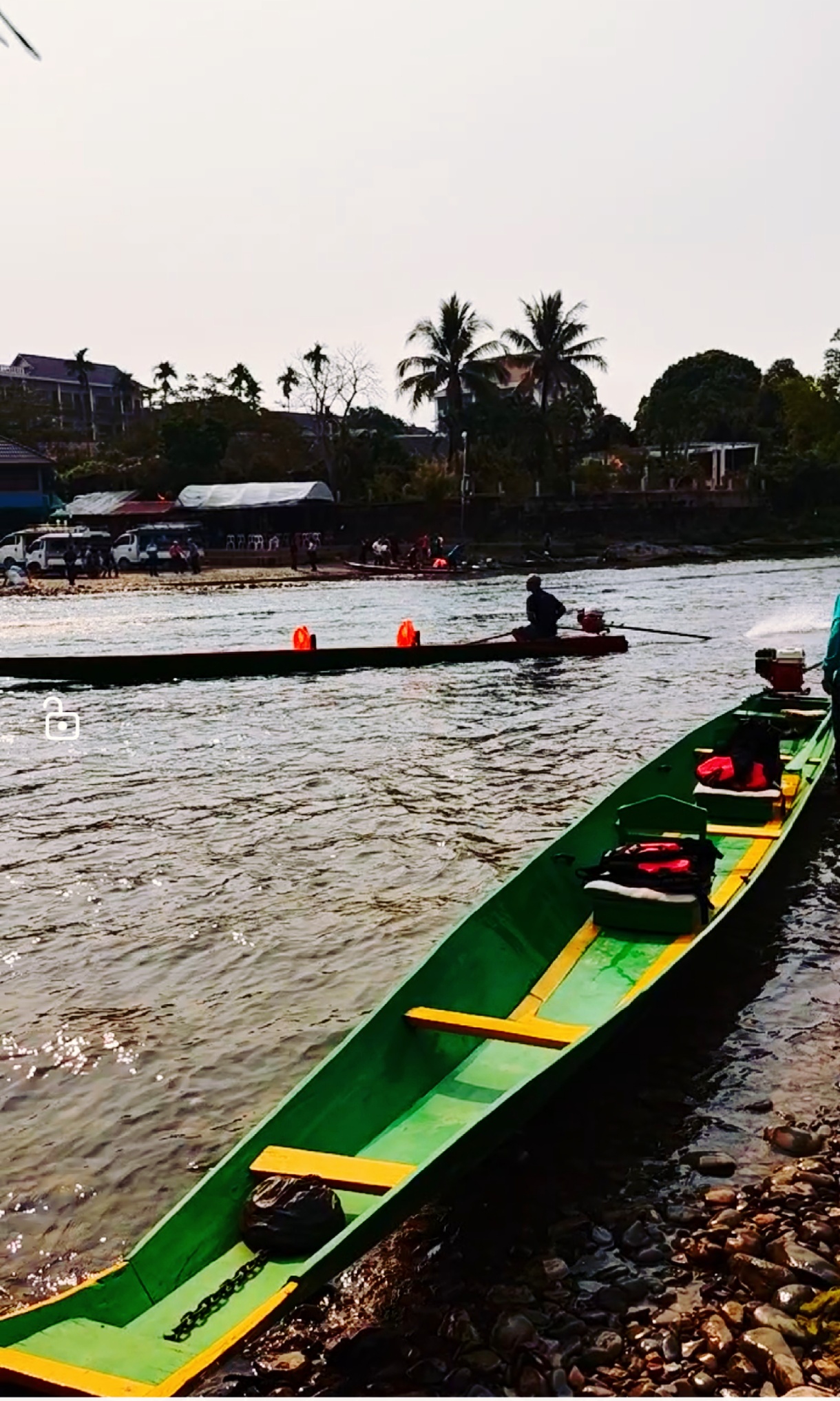 这条水路全长13公里,河面比较宽阔,长尾船开足马力,河水时而湍急,时而舒缓,艄公也很给力,遇到好的景色就慢下来让你拍照,虽然彼此不懂语言,但你举起了手机他就明白了。南松河漂流在老挝是很热门的景点,听说真正的老板是中国的女婿,娶的是老挝高官的女儿。这天,南松河很热闹,长尾船穿棱往来,如箭一样从身边驶过,游客彼此挥手致意。13公里的水程,我们驶了个来回,真是过足了瘾。我觉得在万荣最惬意的体验就是南松河漂流。