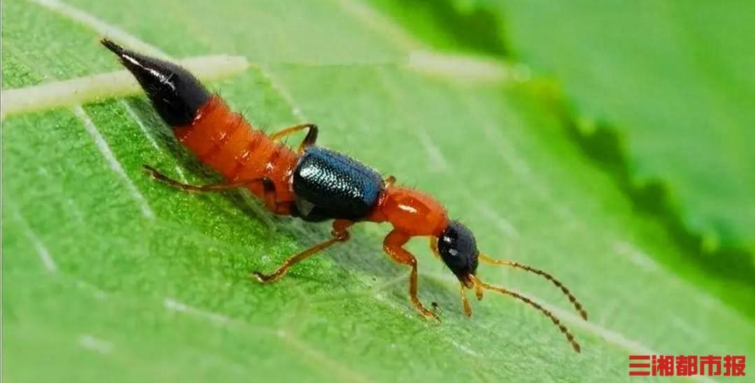 “5月至9月是隐翅虫的活跃期,喜欢夜间灯下活动飞行。被拍打或捏死后,体内分泌物释放出来,呈强酸性,会产生接触性皮炎。”湖南省胸科医院综合门诊部副主任、主任医师李升炉介绍,隐翅虫身体里能分泌毒液,腐蚀性很强,被称为“飞行的硫酸”。