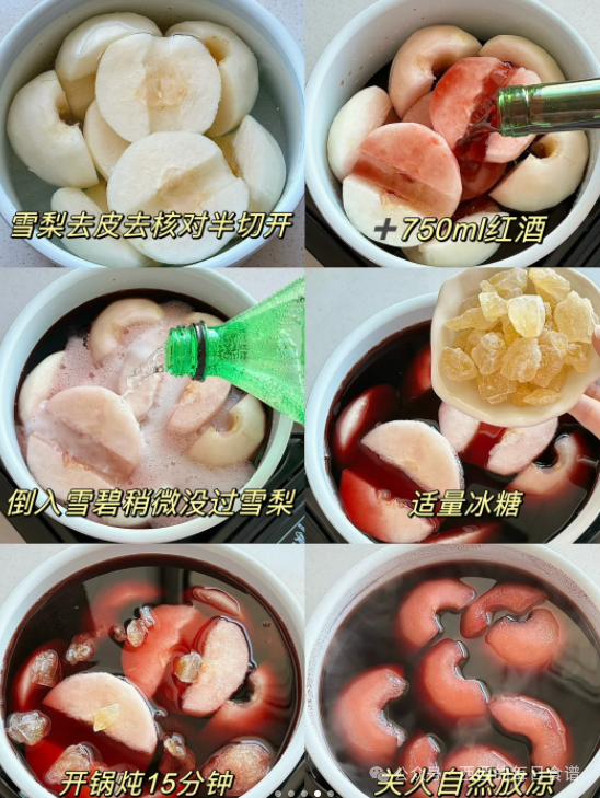 食材:雪梨、红酒