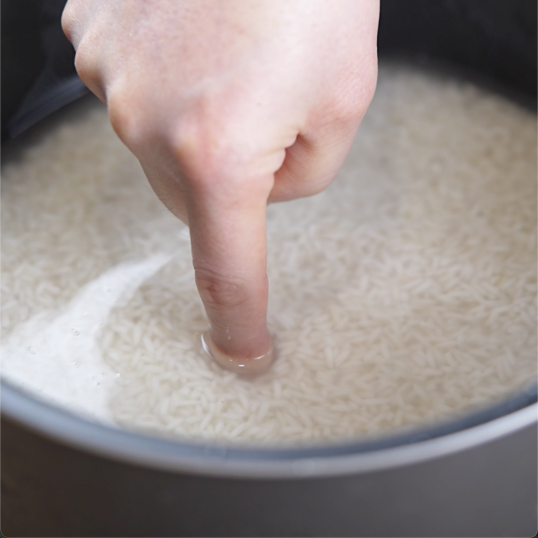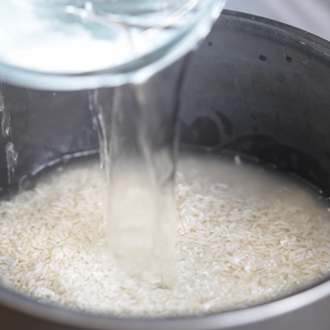 2、加入热水,水不要太多,刚没过糯米就可以,开启煮饭模式。