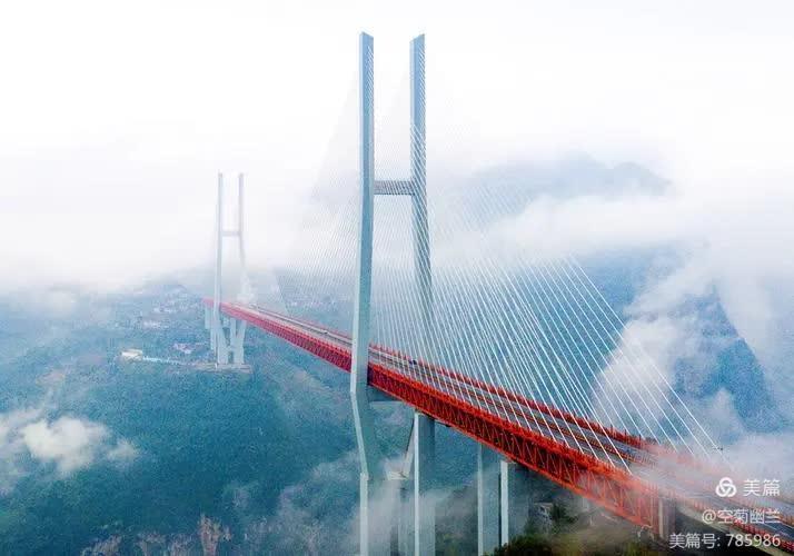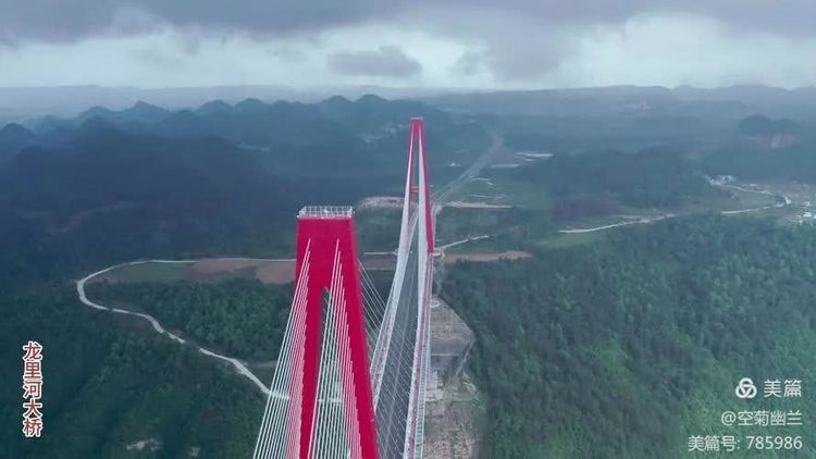 龙里河大桥位于贵州省龙里县,全长1260米,横跨朵花大峡谷,塔顶距峡谷底约400米,桥面距峡谷底约280米,是世界第一高山峡谷景观斜拉桥。
