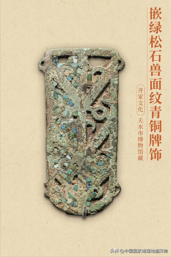 齐家文化·嵌绿松石兽面纹青铜牌饰。 图/视觉中国 制图/九阳