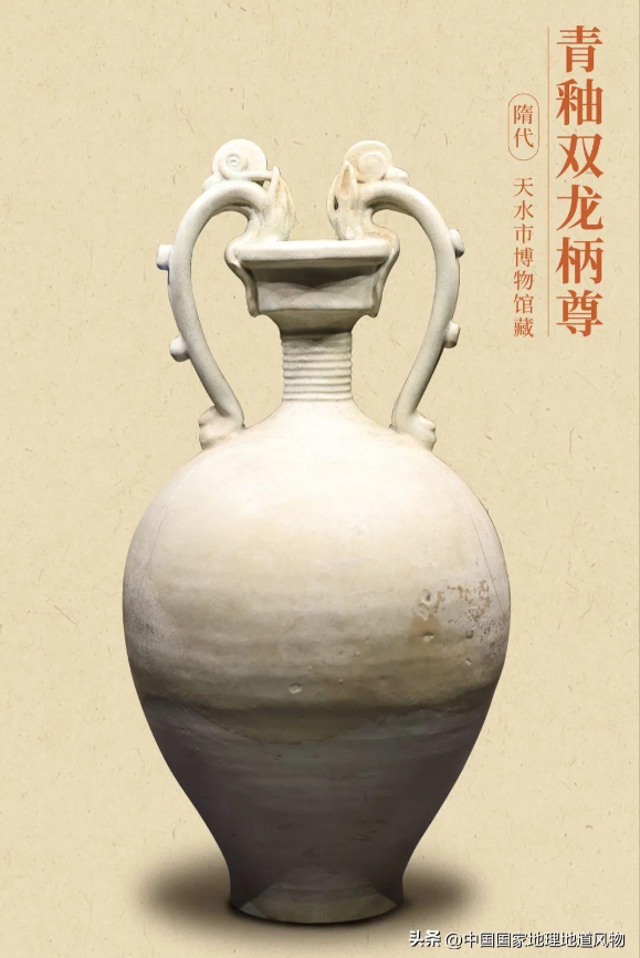 隋·青釉双龙柄尊。 图/视觉中国 制图/九阳