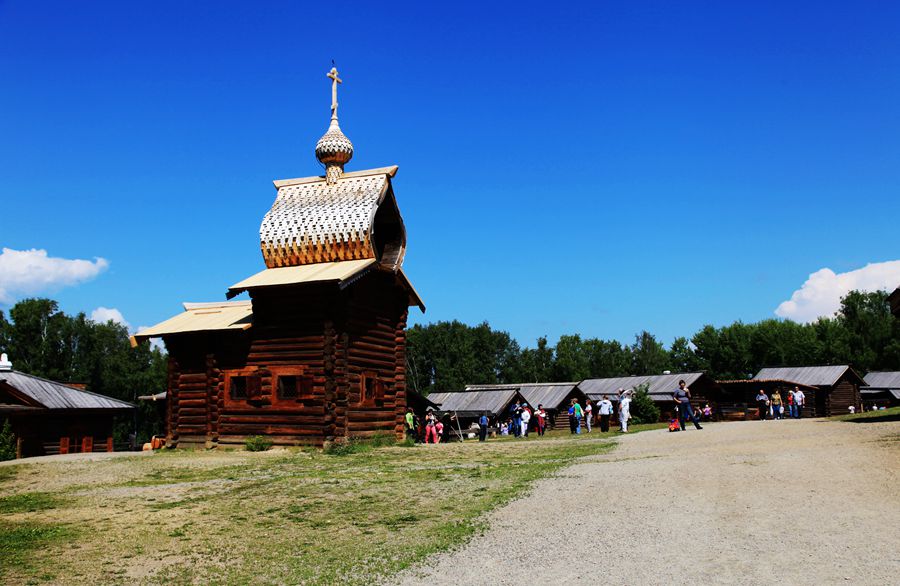 从贝加尔湖返回伊尔库茨克,我们去了塔利泽民俗博物馆参观,民俗博物馆坐落在一片林中空地上,露天式。馆内有许多东方游牧民族的生活设施,兽皮、桦皮、帐篷、蒙古包。还有俄罗斯木刻楞建筑群。这些建筑都是木头建成的,保留着原汁原味的俄罗斯建筑风格。这里的风光也非常美,森林覆盖的山川河流,与古老的建筑相映成辉。在大森林的衬托下,俨然一幅美丽的风景画。