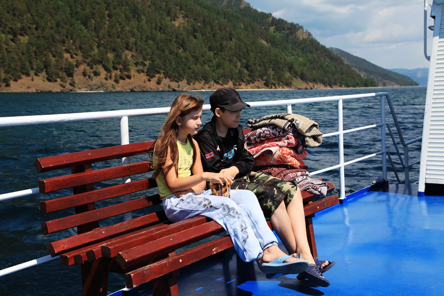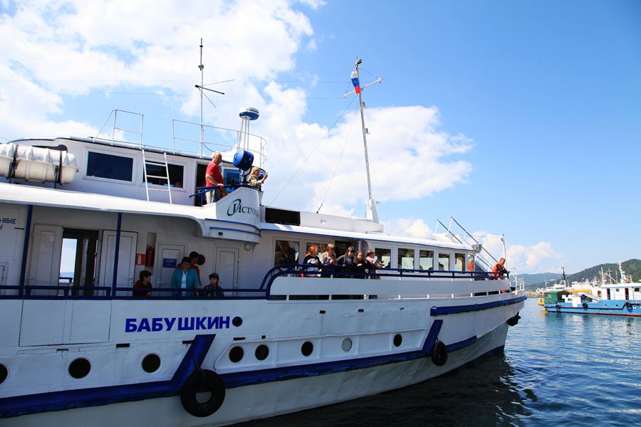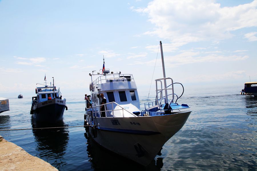 游贝加尔湖的船是机帆船,150卢布一张船票。和国内不同的是,人家的船不等人满就开船,这艘船上,算小孩在内总共才十人。女伴们都说,这够船家游湖的费用么?