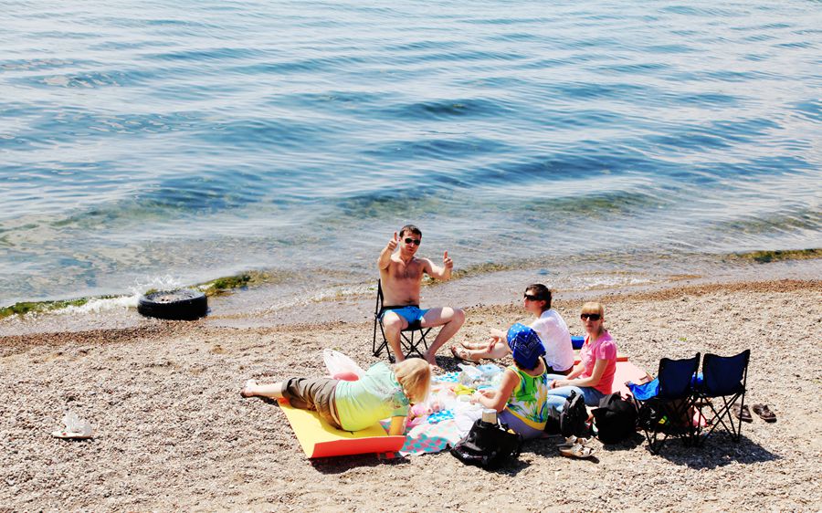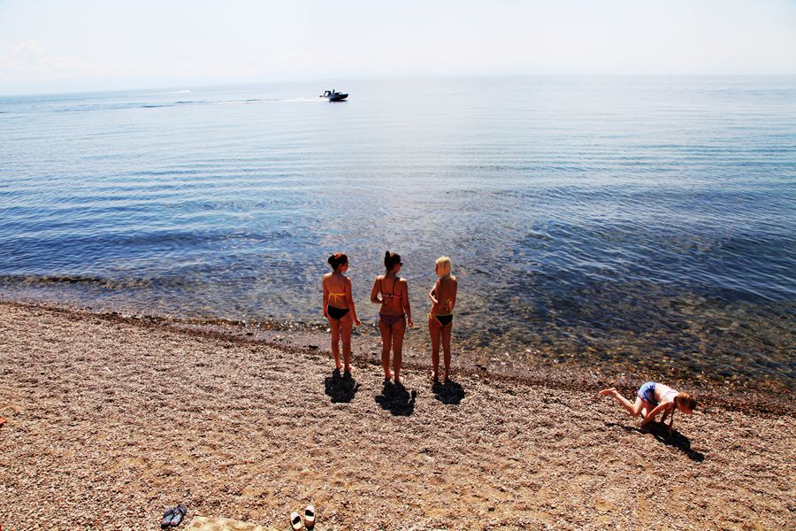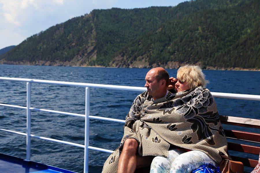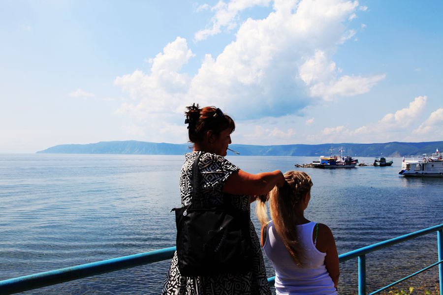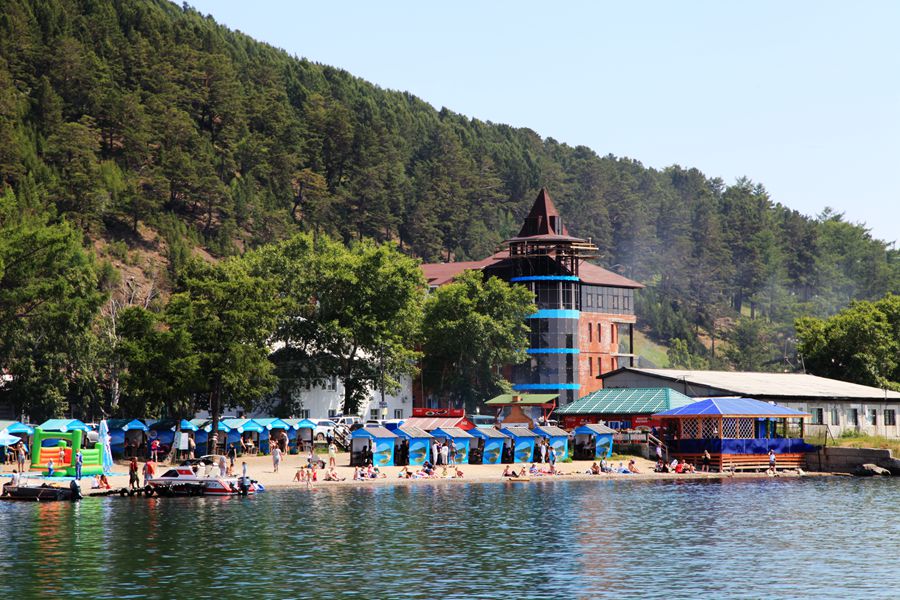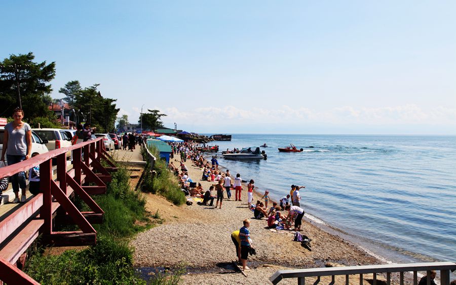 七月底八月初的天气,在内地已很热了,可贝加尔湖却凉爽宜人。虽说火辣辣的太阳高照,站在湖边却丝毫感觉不到热。以往这样的日头,我是要戴遮阳帽的,可在贝加尔湖不用戴帽子也晒不黑皮肤。看着躺在沙滩上晒太阳的老外们,各色人种都有,他们是从世界各地云集而来的。
