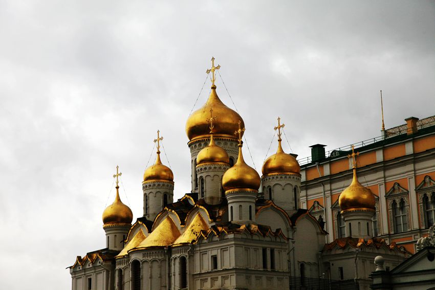 克里姆林宫不但是莫斯科城市发展的中心,同时象征着伟大永恒的俄罗斯。克里姆林宫的建筑是中世纪欧洲筑城工事建筑中最优秀的杰作之一。整个城墙长约2235公尺。这段红色的城墙笔直伸展,非常漂亮。有三位一体的塔楼,有圣母安息教堂,有圣母报喜大教堂,有耶苏解袍大教堂,有大天使教堂等,这些教堂美丽绝伦,看的我们眼花缭乱。我记得我们观赏了四个大教堂。在克里姆林宫里,一定要注意听讲解,如果没有讲解,真是不知道这些宏伟的建筑历史。我也听的稀里糊涂,好在有图片,回来查资料才晓得了。