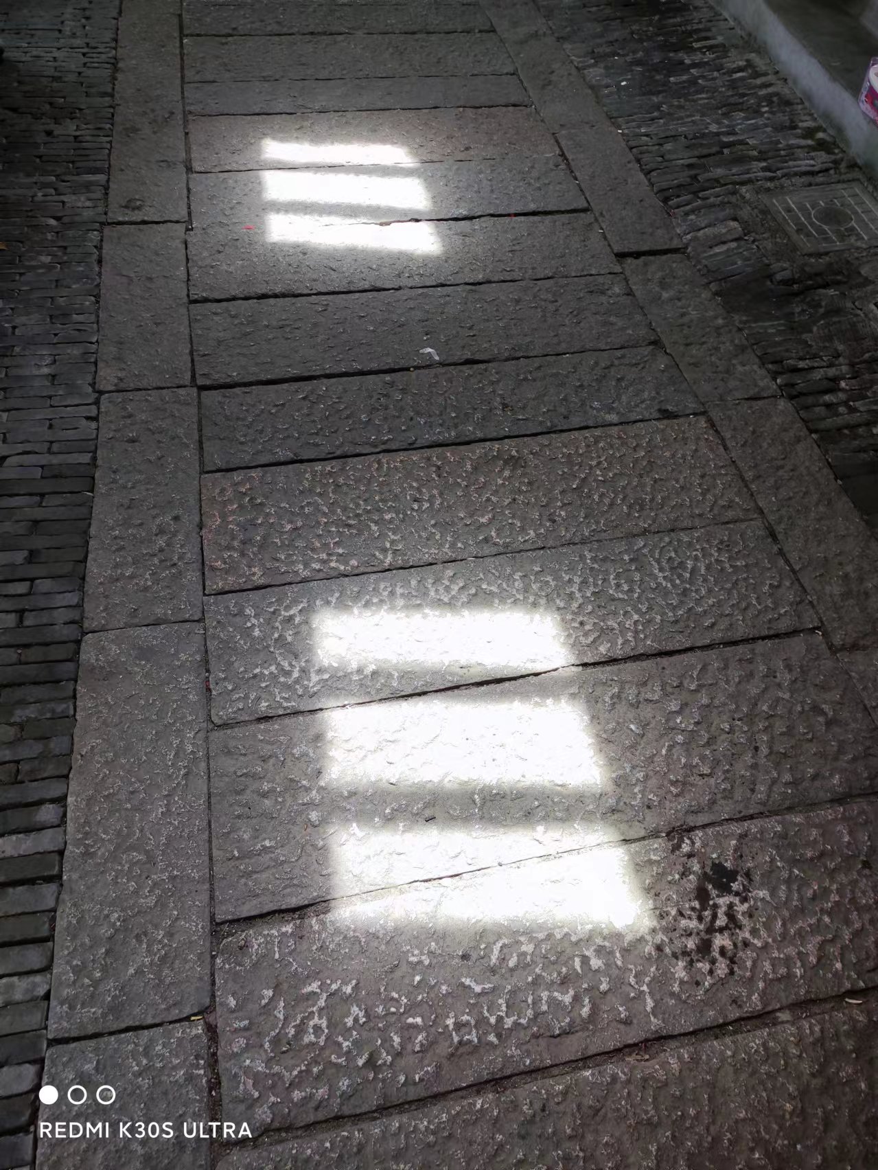 古镇的房子有的已有百年历史了,至今还在使用,并且焕发了青春。我去了一家奥灶面馆,房子就有百年了。奥灶面特别的好吃,面条细 ,汤鲜,浇头爆鱼皮脆肉嫩,咸中带甜,那个好吃让我赞不绝口。古镇的另外一家姓唐老伯,他的房子也有百年了,一家三口住在里面,虽然已六十多岁了,仍闲不住,坐在门口卖当地的农副产品和自己家做的糕点。我情不自禁给他拍了照,他的背后是百年老房,脚下是青石板路,前面是一条清澈的河。青石板路在阳光照射下有了一块一块光亮,它也在告诉南来北往的游客自己不知道被人踏了、走了多少次,多少年,多少时光。