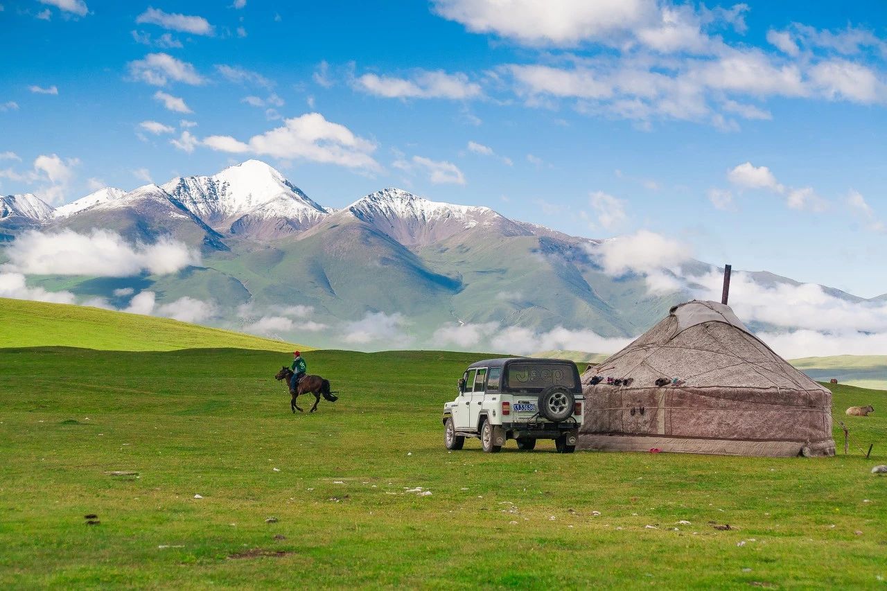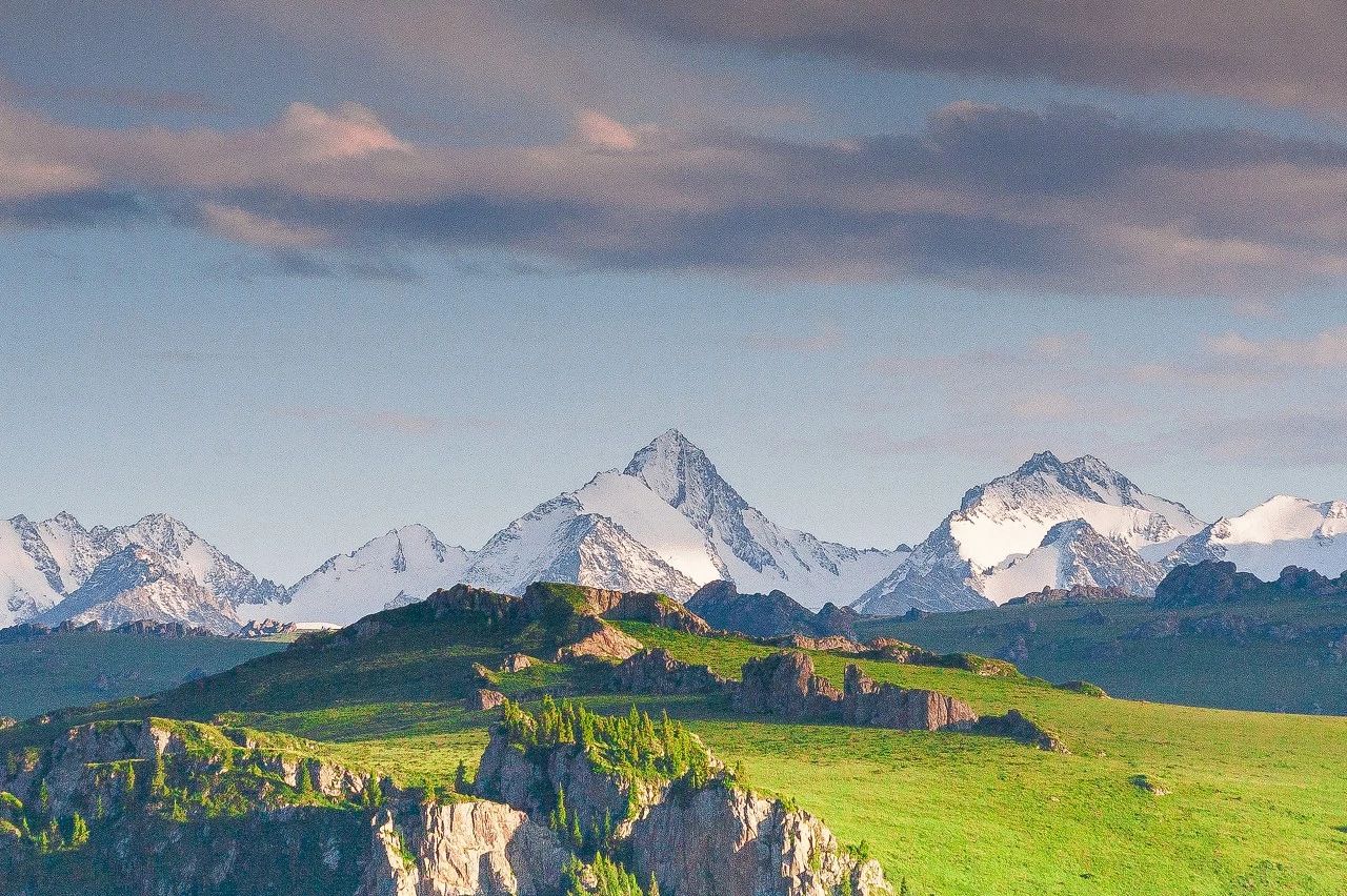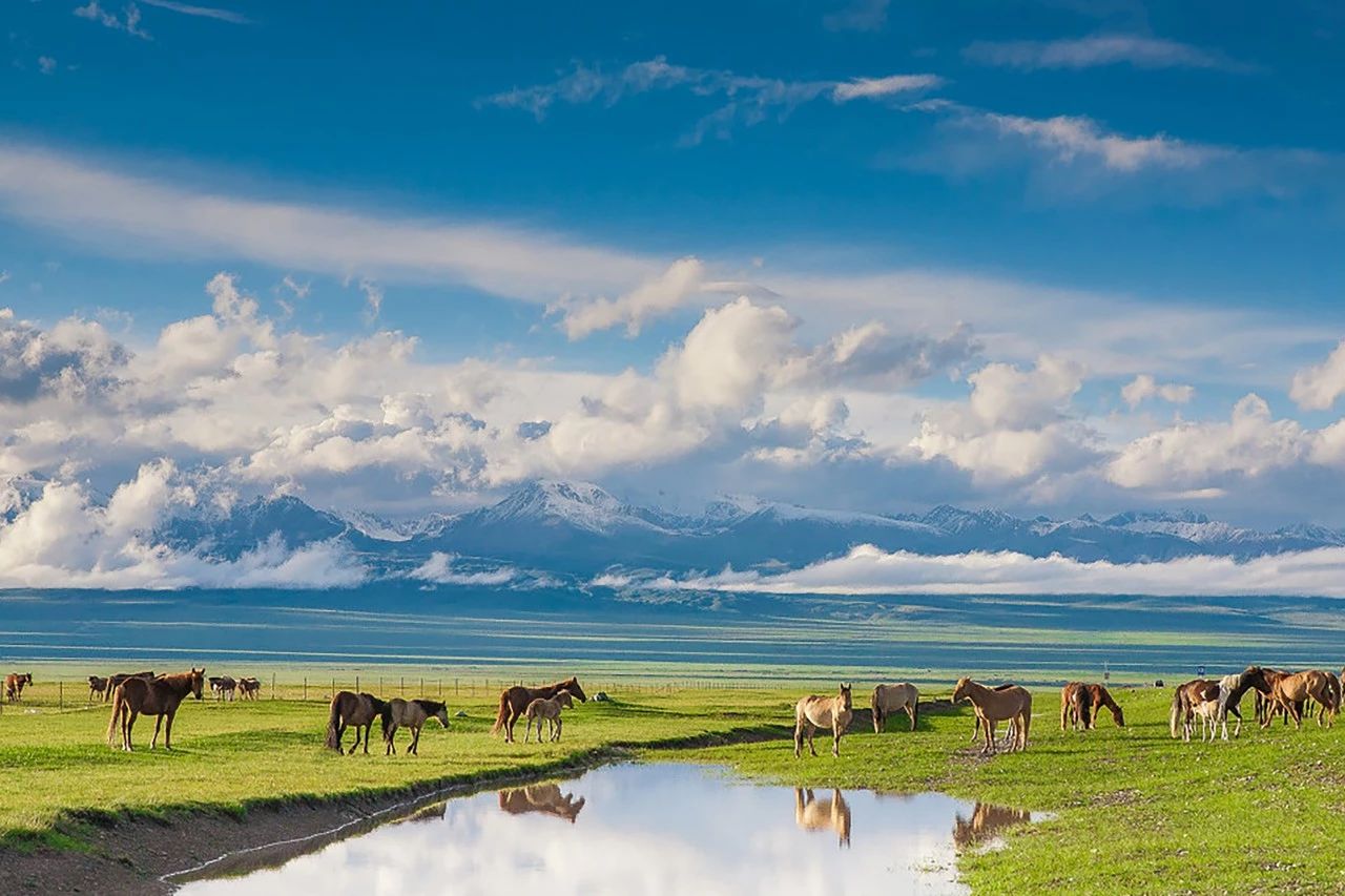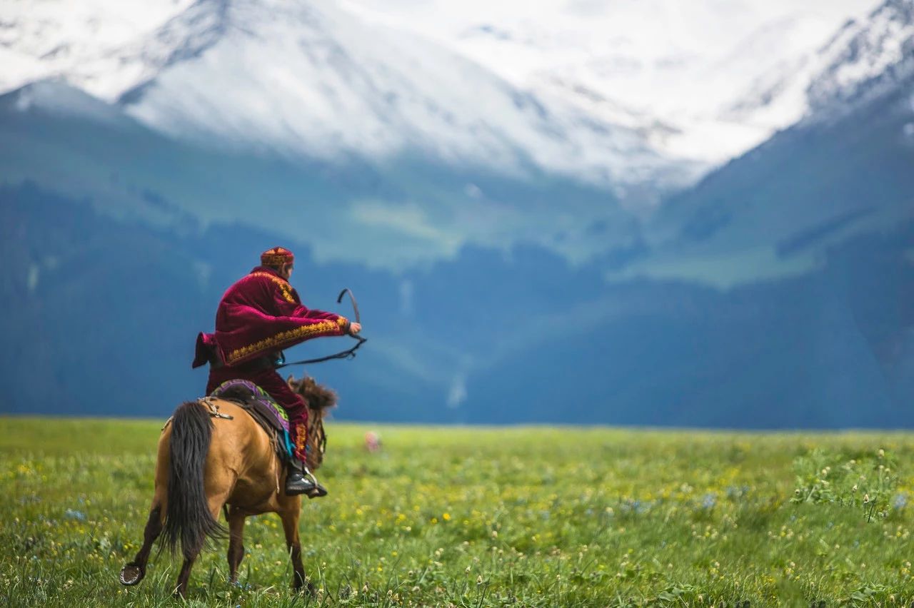 你骑上马,一座雪山迎面而来,它们如同神明,守护着这一片四季纯净的草原。