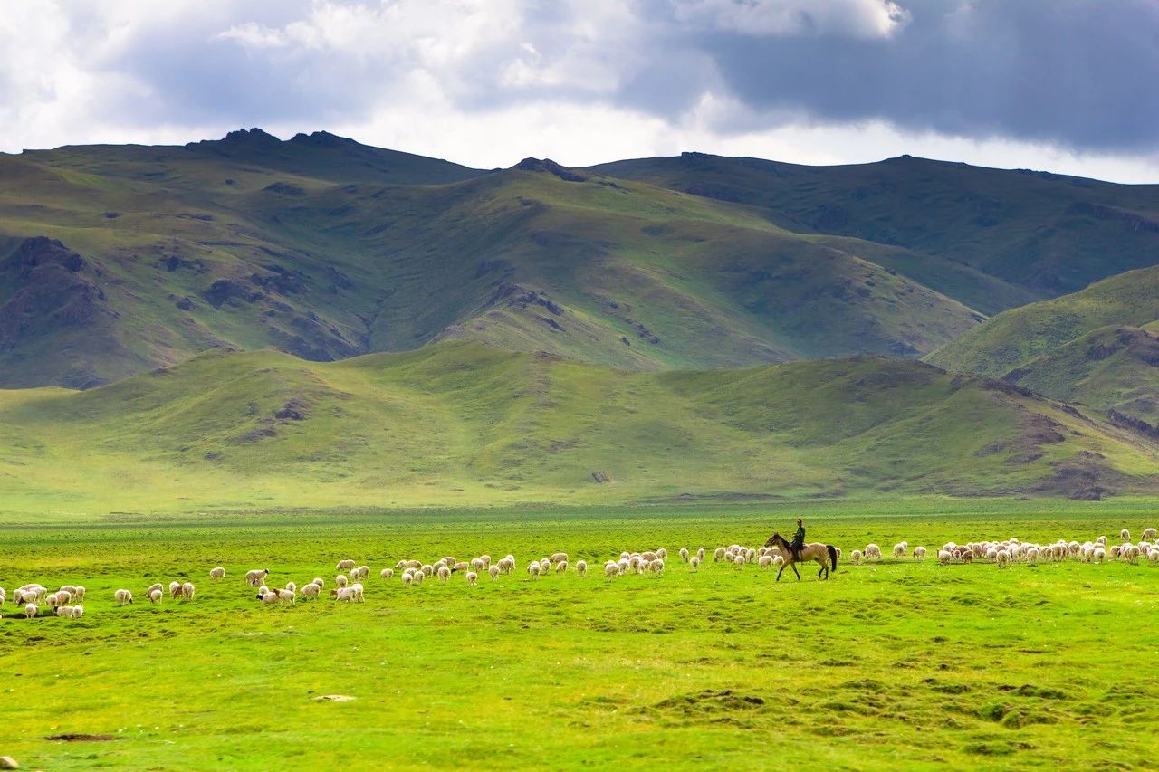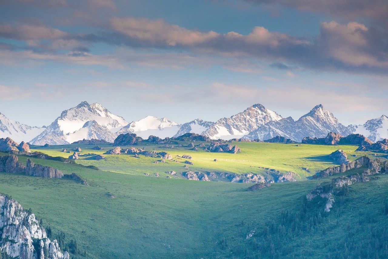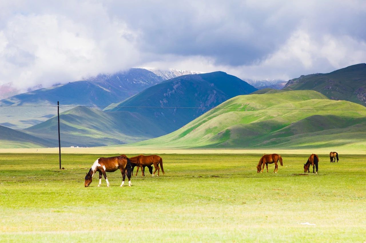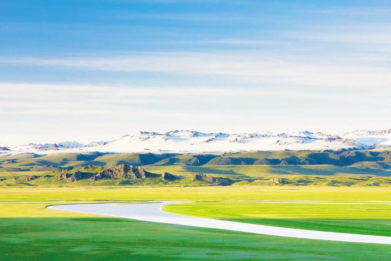 你骑上马,一座雪山迎面而来,它们如同神明,守护着这一片四季纯净的草原。