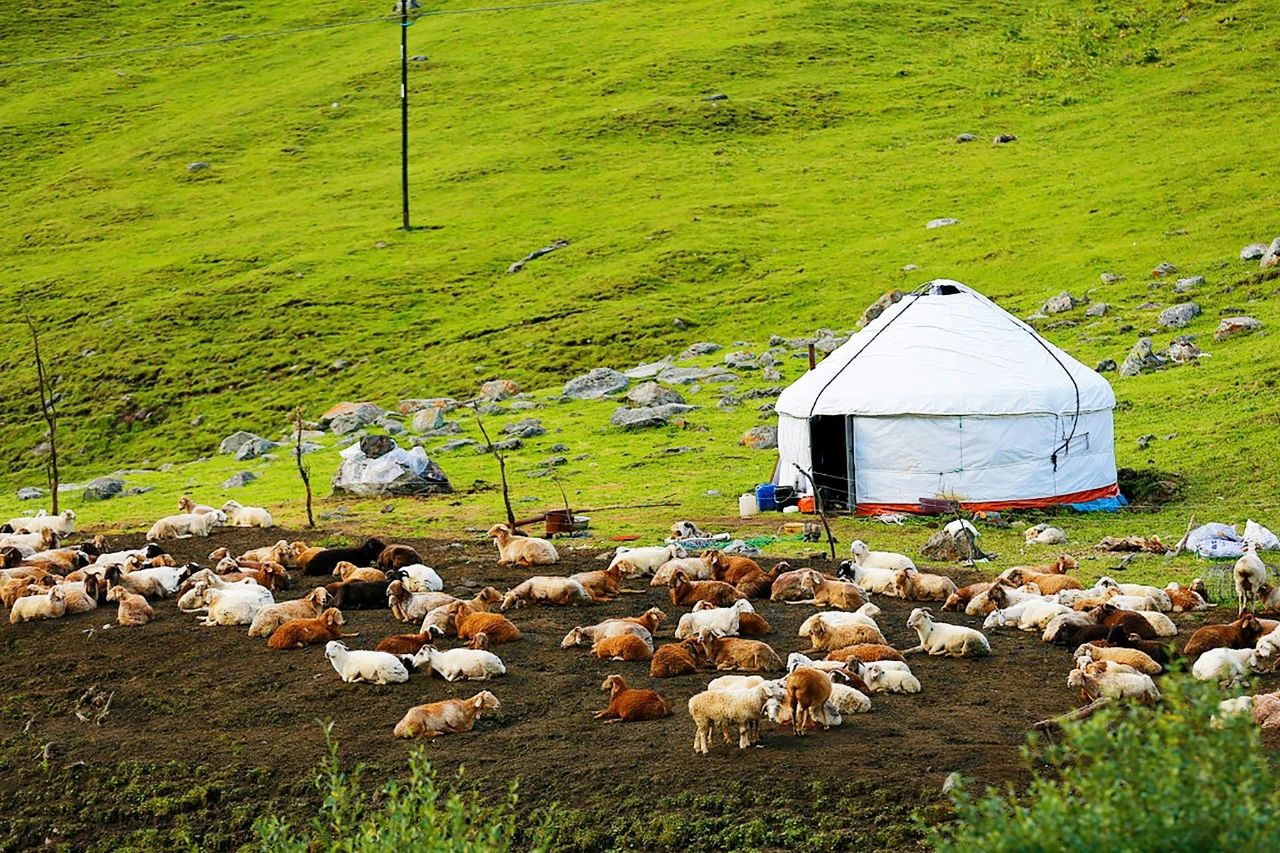 白色的蒙古包在这片绿里显得那么渺小,不,是他们的家太大了。大到骑马才能抵达,大到草原上来往的风,无遮无拦仿佛可以穿过你心的旷野。