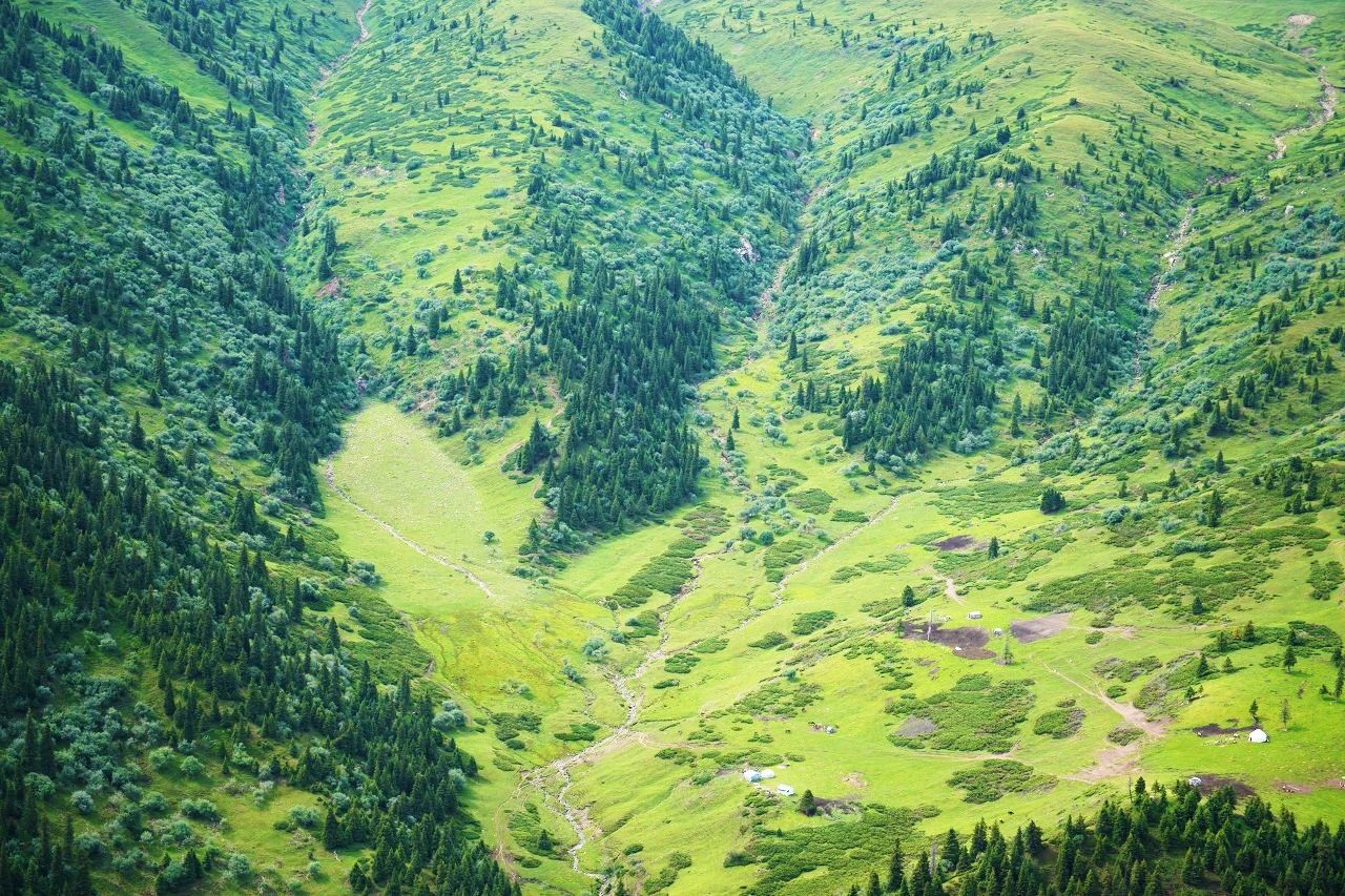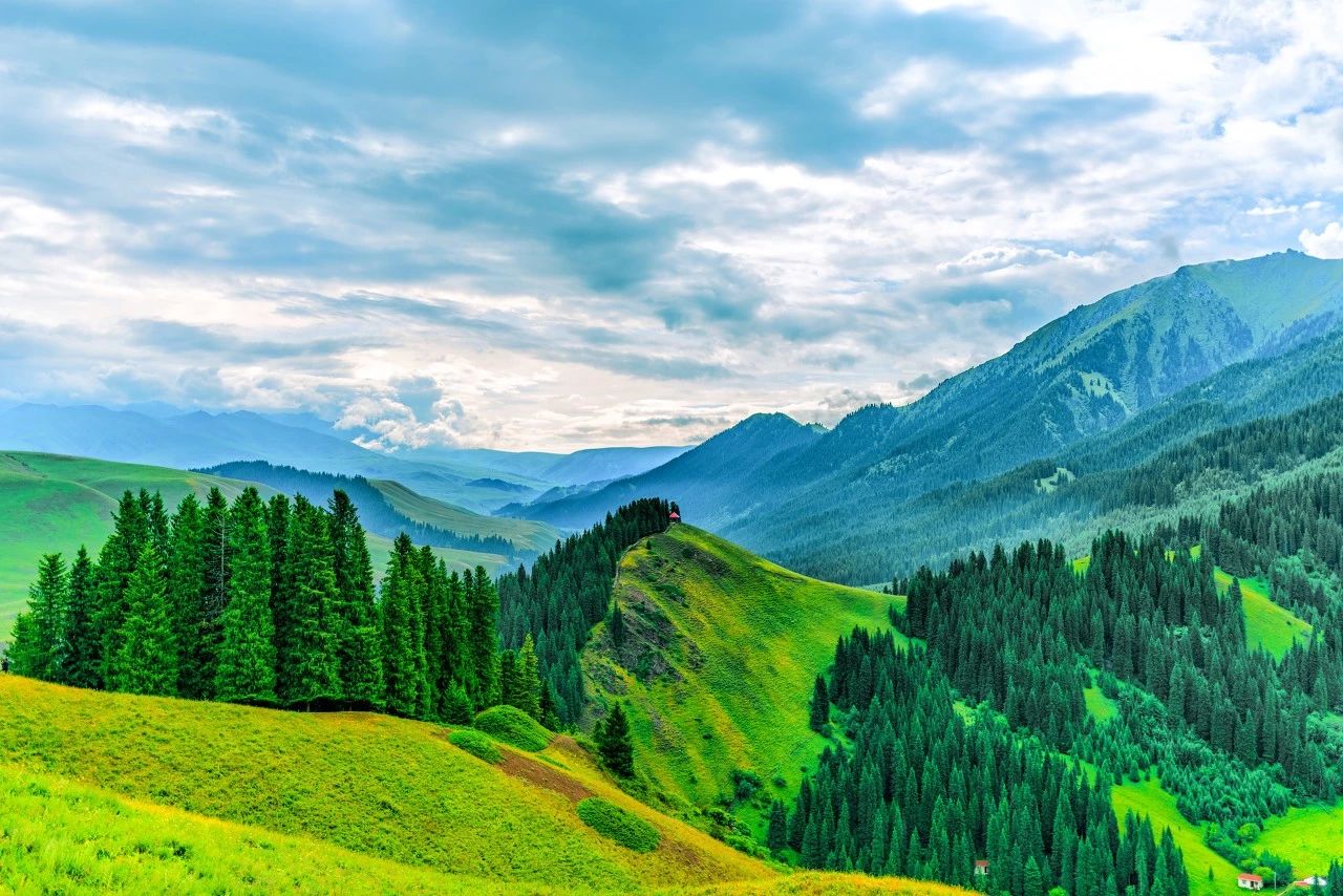 绿色是巩乃斯的森林公园,是郁郁葱葱的雪岭云杉。巩乃斯距离巴音布鲁克并不远,在巩乃斯你可以看到无边的森林。