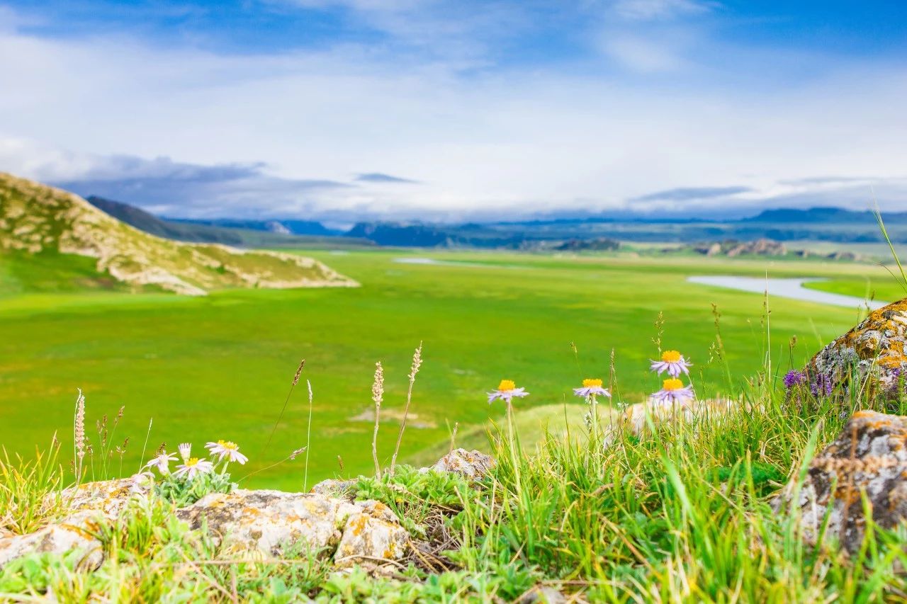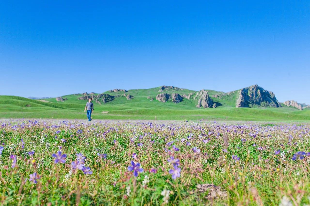那里的天空总是那么蓝,云朵总是那么白,偌大的草原几十、几百公里不见人烟,只有清澈的河流蜿蜒流淌,五彩的野花在草原上天真烂漫地盛开……