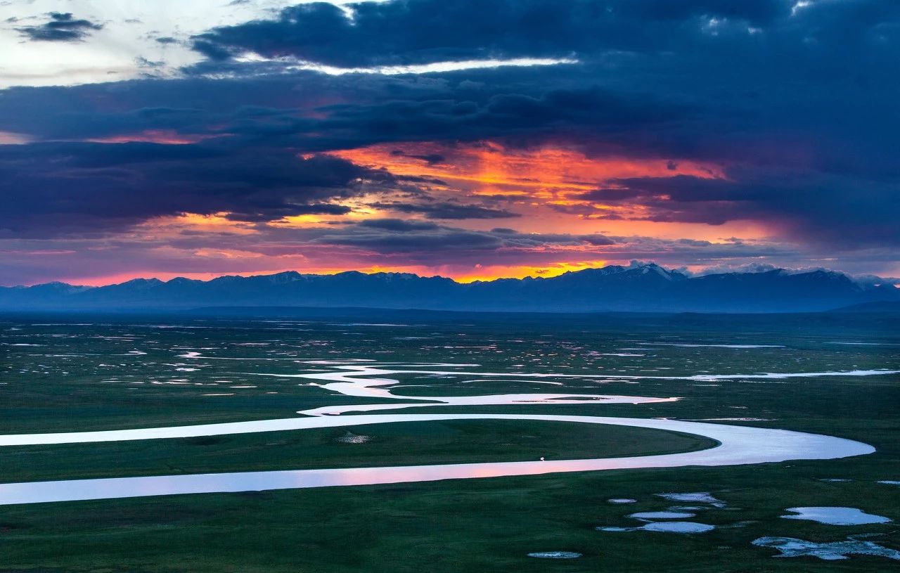 第一次听到巴音布鲁克这个名字的时候,是因为“九曲十八弯”的日落,据说日落时分在开都河能同时看到九个太阳。