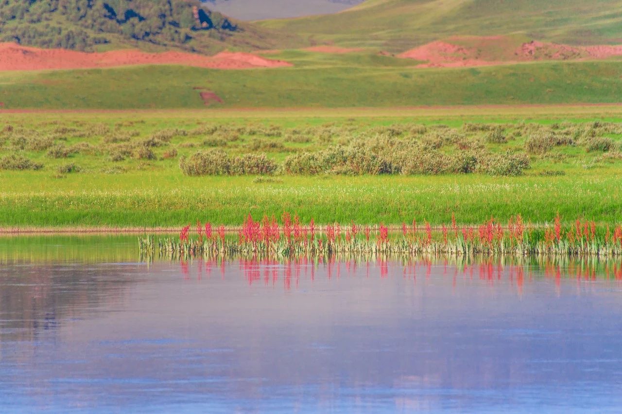 你可以策马扬鞭,驰骋在这一片水域丛生的无边灵动的草原,停在一个湖边,停在一个小山坡上,你会遇到牛羊、遇到水鸟,遇到花丛,却很少会遇到人。
