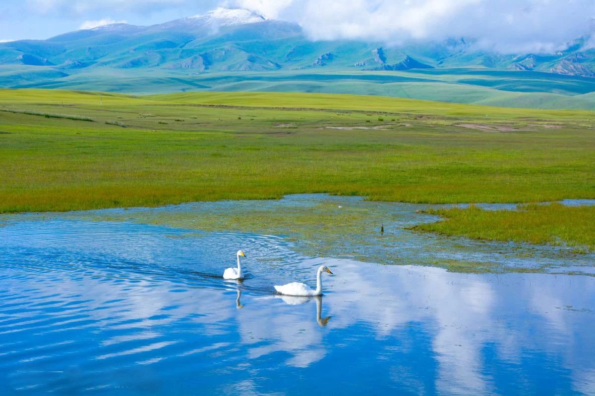 它还是世界上最大面积的天鹅繁殖基地,每年,有数千只的天鹅飞回巴音布鲁克,在天鹅湖繁衍、栖息。