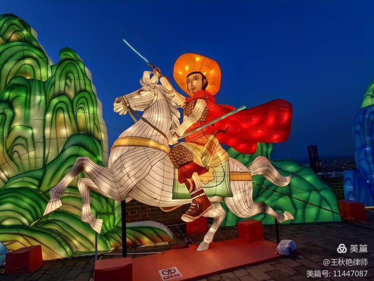 南城门处有灯展,买了30块钱的门票,顺便看上一眼。夜幕降临,花灯亮了起来。龙年里,龙当然是灯展的主角。唯一能与龙灯抗衡的,当属以《木兰辞》为主题的一组花灯了,谁叫这里是人家花木兰的老家呢!