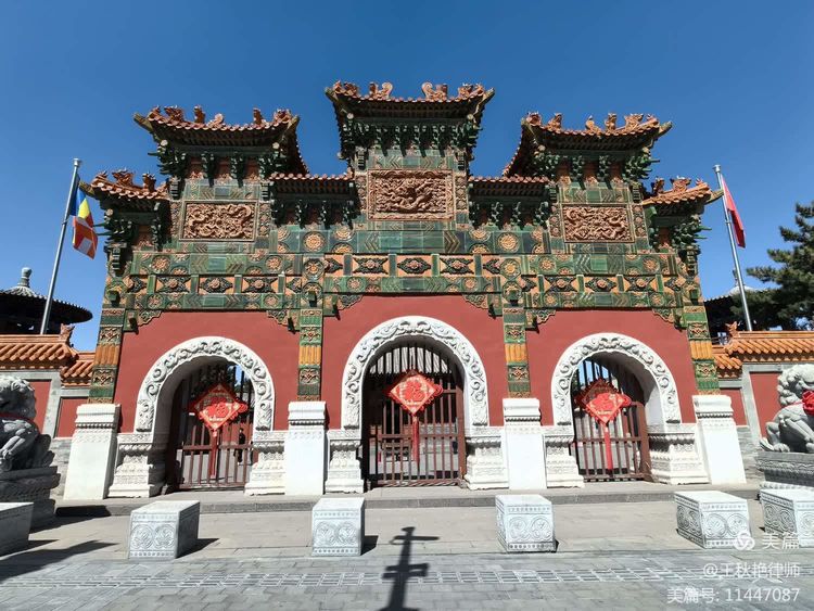 除白塔外,法华寺现有建筑均是2008年后在原址复建。修复后的寺院坐北朝南,占地面积57亩,为庭院式佛教建筑,前后共四进院。对于复建的建筑通常不是很感兴趣,倒是门口高大的琉璃牌坊很好看,拍了牌坊之后,简单的走过几进院落,就直接去绕塔了。
