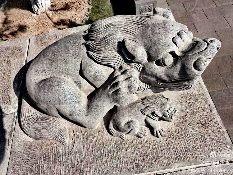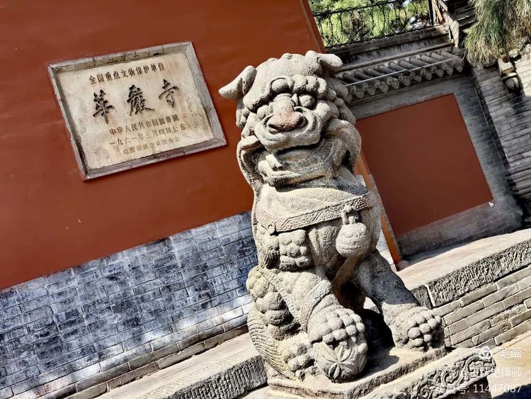 出了下寺,被门口红鼻头的石狮吸引住了,拍张照片留个纪念,看照片就知道,人家可是有主人的,可是华严寺的狮子哦!
