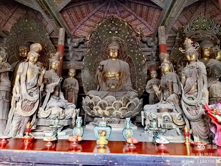 殿内主供五方佛,为明代艺术之精品。“五方佛”,又称“五智佛”、“五方如来”、“五智如来”,源自密宗金刚界思想,东南西北中五方,各有一佛主持。分别是中央的毗卢遮那佛(大日如来)、东方阿閦佛(ā chù fó)(不动如来)、西方阿弥陀佛、南方宝生佛、北方不空成就佛。