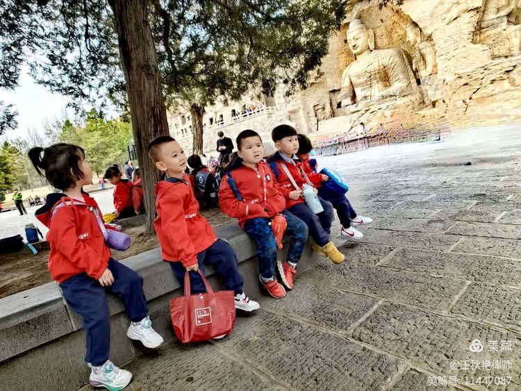 今天在景区内遇到了一群春游的小朋友,几个老师忙得不亦乐乎。抓拍了一张孩子们与大佛的合影。孩童的稚气与大佛的古老同框,孩童的本真与佛教的本我也是相映成趣了。