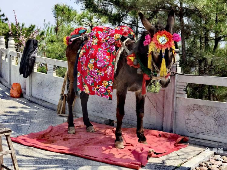 乾坤亭处有一头小毛驴,主人是一个面色黝黑、头扎毛巾、身着羊皮坎肩的陕北老汉。小毛驴被主人打扮的花枝招展,头上、脖子上有红花,身上披着大花被单。可能是游客见多了,很有镜头感,看到我举起了手机,马上就转过头来,摆出了一个美美的姿势。不知道什么原因,毛驴头顶戴了个明晃晃的小镜子,给它拍完照,赶紧下意识的躲开——按神怪小说里的情节,这要万一把我的原形给照出来,可咋整?