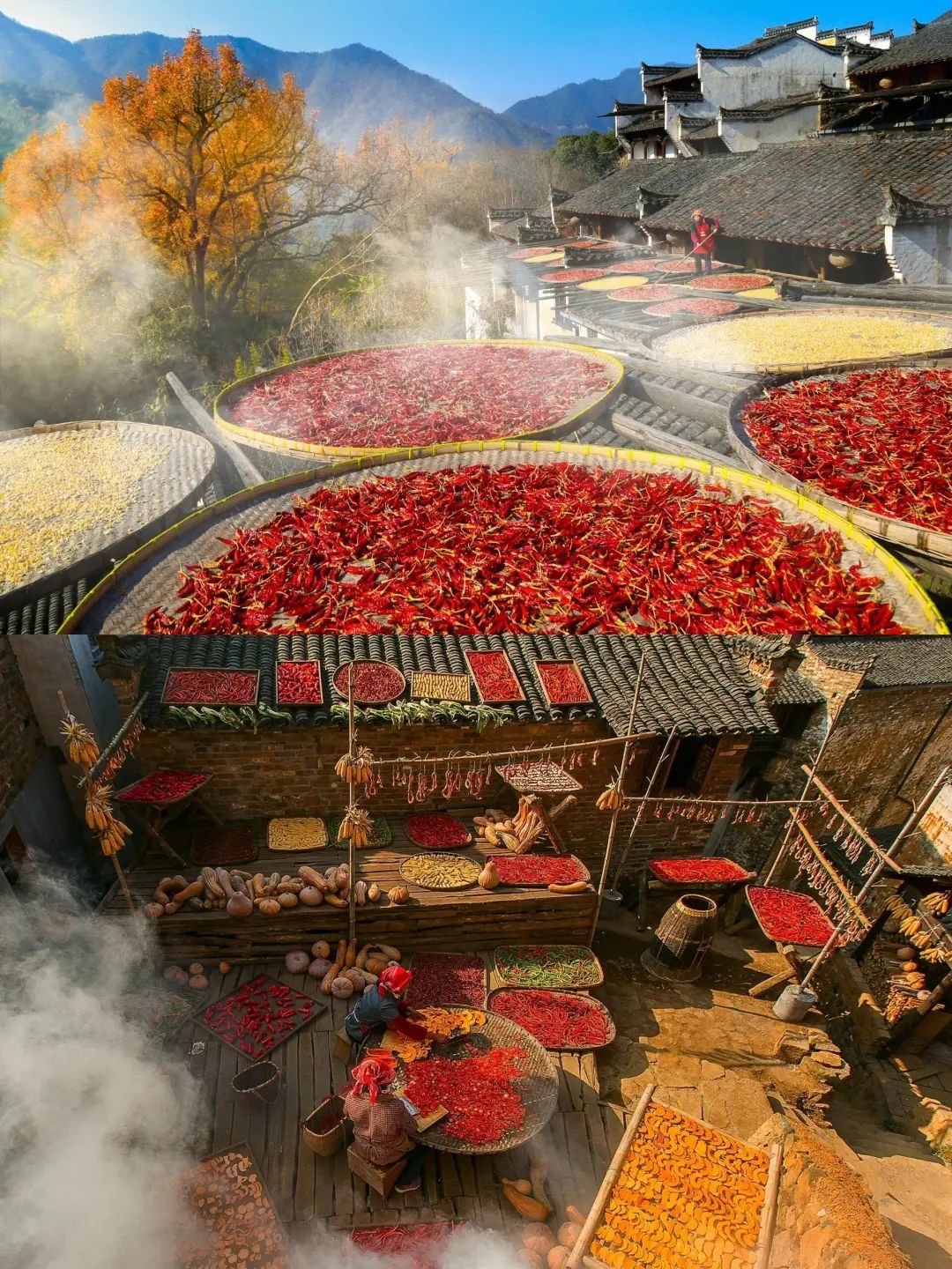 今年的婺源是晒秋小城,从高铁站到各个乡镇,沿线,处处都是晒秋氛围,李坑,汪口,江湾,篁岭,婺女洲各类晒秋等你来看,晒扁、民居、晒娘,打卡拍照,超级出片