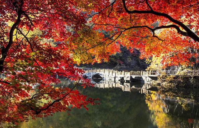 本溪有着“中国枫叶之都”的美誉,观赏期来得比较早,9月下旬开始,延绵几十公里的山野,红橙黄绿交替,逐渐被染红。关门山的枫王值得一看,枫树特别大棵。老边沟枫树茂密,沿着溪水行进。大石湖的枫树种类很多,在阳光下熠熠生辉。