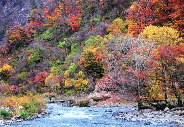 巴山一夜风,木叶映天红;色比桃花艳,秋如春意浓。10月中旬的光雾山漫山红遍,橙黄层叠。枫树、落叶松、黄栌、乌桕树等数百种树组成的红叶资源,散布在光雾山几百平方公里的山脉。米仓山恍如彩虹,天然画廊藏于雾霭中,黑熊沟的秋叶铺满小路,香炉山极尽绚烂,让人目不暇接。