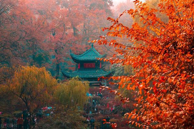 岳麓山的红叶观赏期可持续一个月,这段时间内,红叶会呈现出一片片金黄、橙红、深红等色彩。从南门进入后,沿着山路一路向北,可以经过爱晚亭、放生池等景点,最后到达山顶,一路红叶相伴。