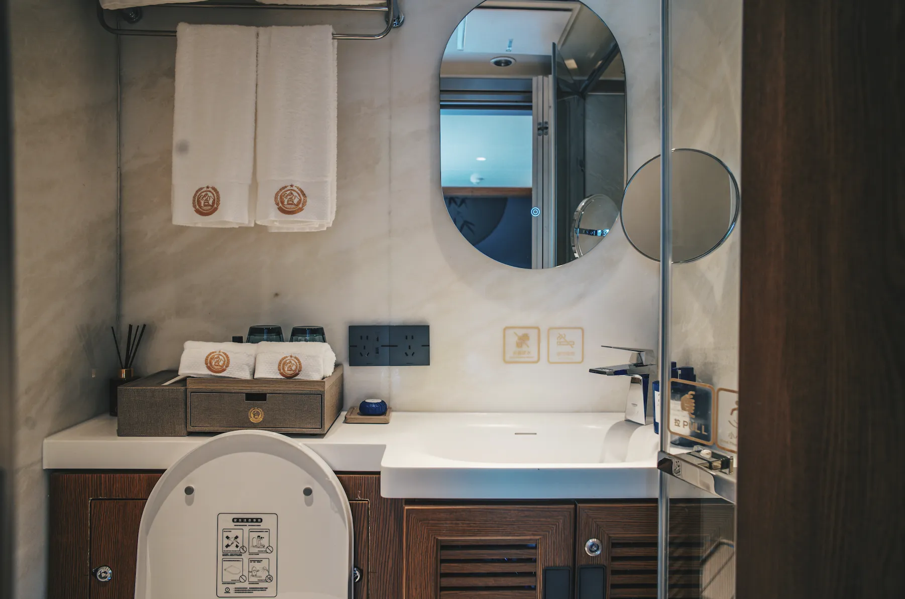 我们这次的车厢是10㎡的乐享房。这个房型是列车上的基础房,全列共24间(每节车厢4间,共6节车厢)。