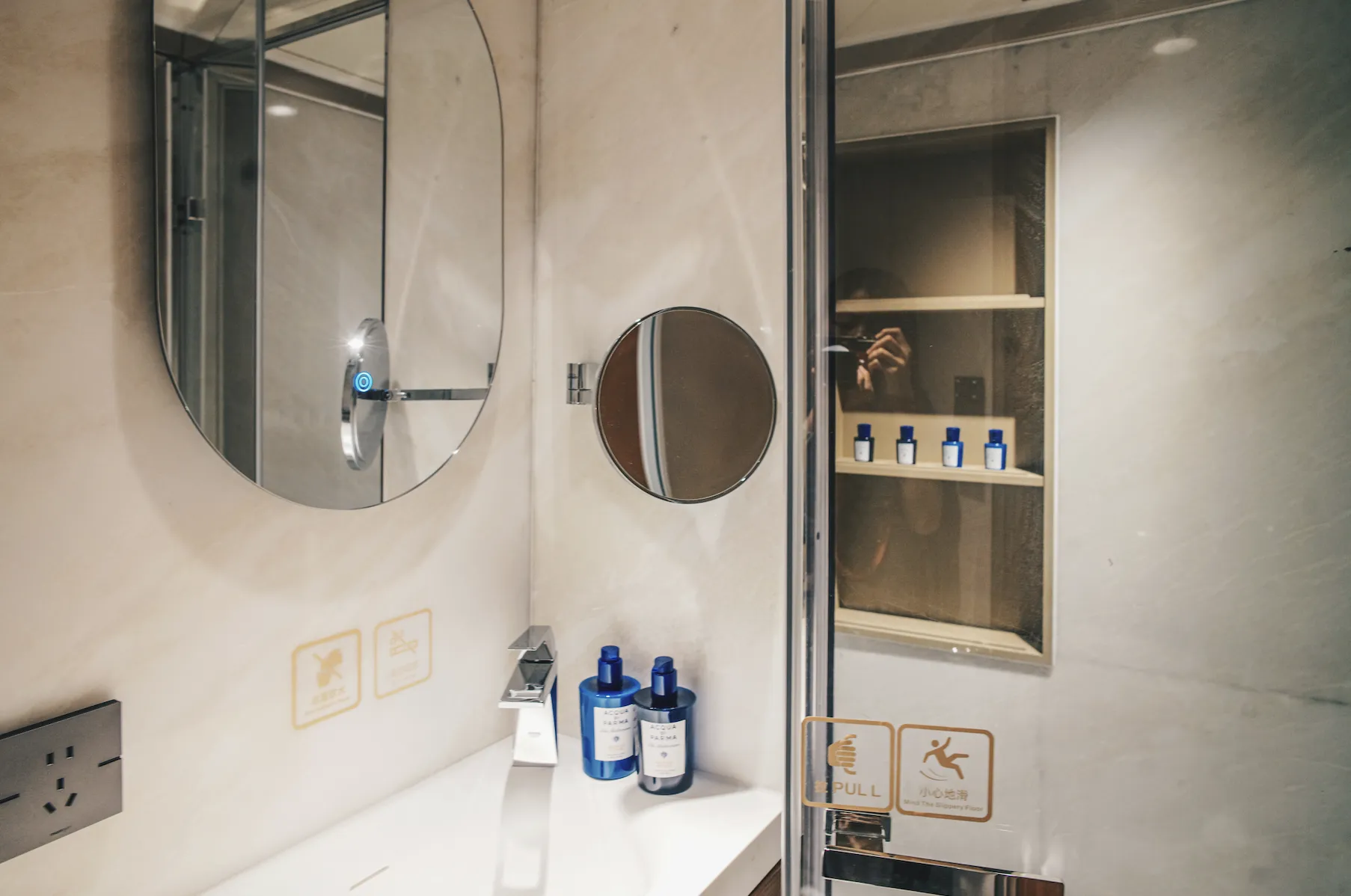 2.5㎡的洗手间也做到了干湿分离,洗护是帕尔玛之水,牙膏是马尔斯。都是高大上的配置。