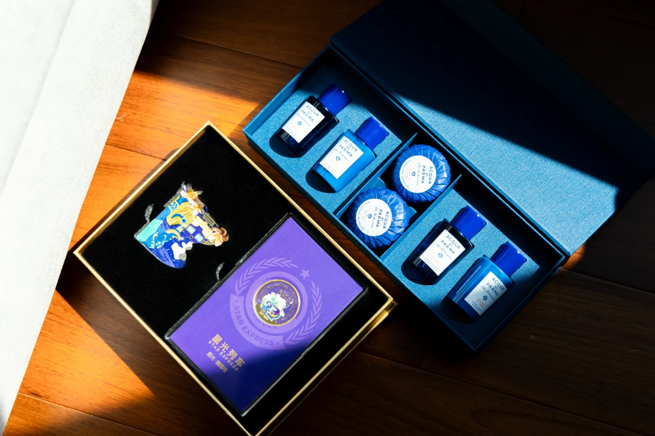 伴手礼也提前放到了房间里,是一整套的帕尔玛之水,星光列车纪念牌和冰箱贴。