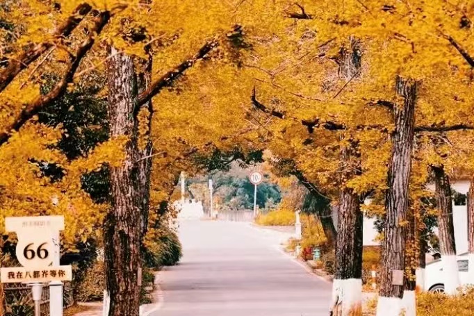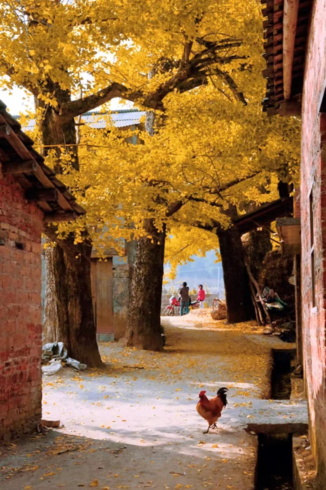 每年11月,30000多棵原生的银杏树就披上了金黄色的外衣,十里银杏,绵延成海,古村茶院,光阴悠然,唯美又浪漫。