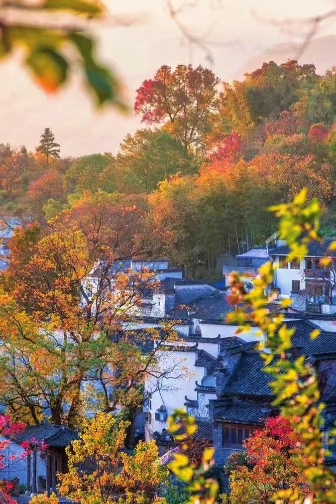 塔川是一个保存完好的徽派小村庄,山涧溪流穿行而过,依山而建的古民居,古朴又美好。每到秋季,漫山遍野的乌桕树和红枫,影影绰绰,与白墙黛瓦得徽派建筑相互映衬,形成了一幅天然的山水画。