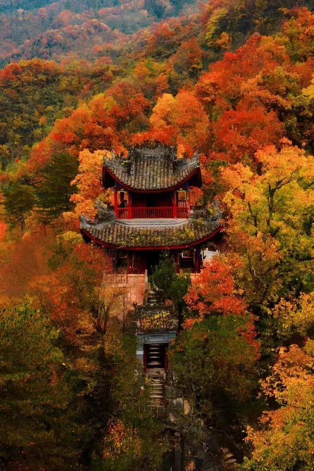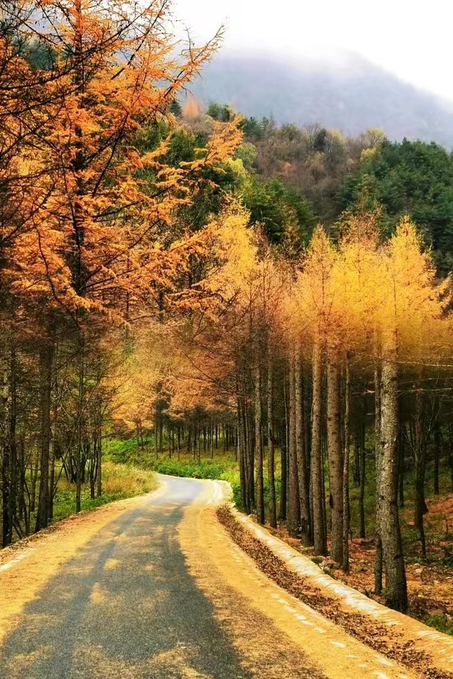 张良博物馆里的古银杏树、狮子沟牧场的金黄广阔的草地、情人谷景区的金黄落叶松、太子岭生态区漫山遍野的红叶、高江路的银杏和水杉…每一处都是满满的秋天韵味和色彩。