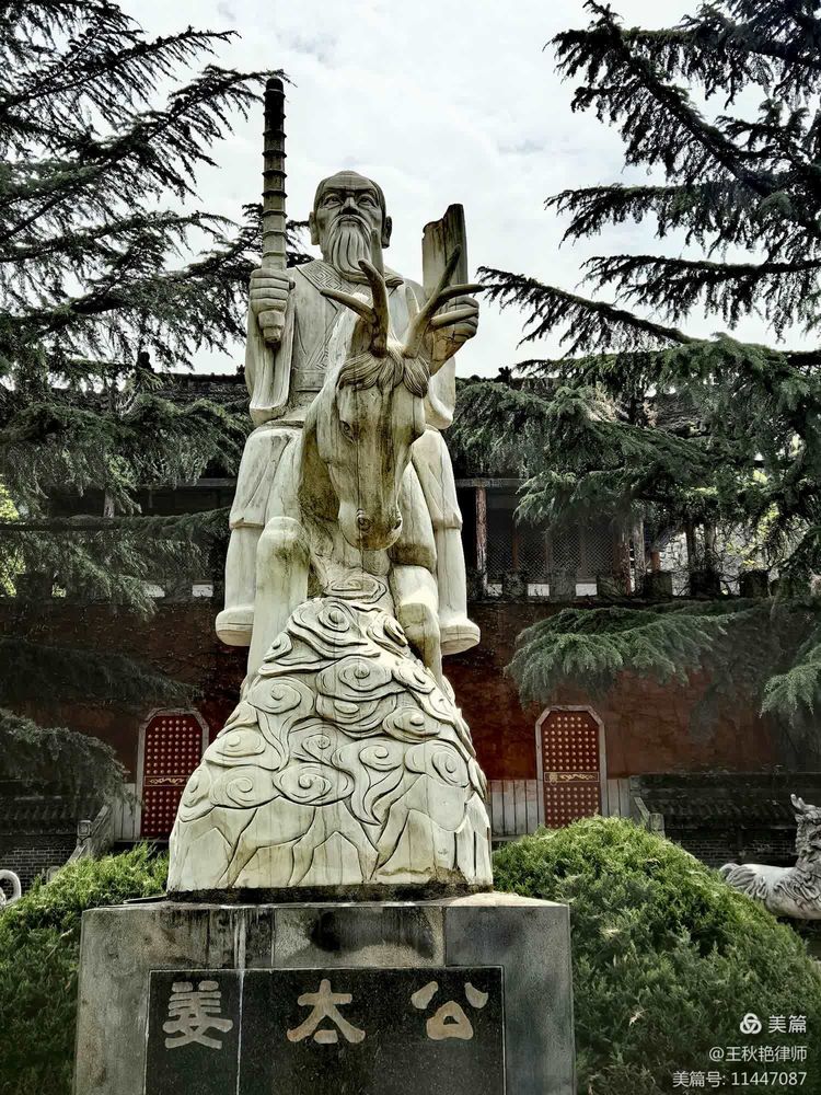 进入景区,就能看到骑在四不像上的姜太公塑像。