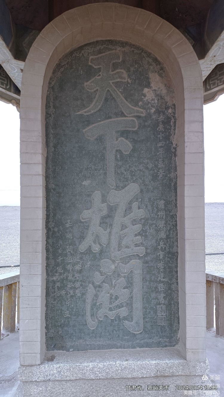 (图片:走近一看便是一大发现,原来它是清王朝时肃州镇总兵李廷臣之杰作,上面“天下雄关”四个大字即为其亲笔所书。这是古人留名的最