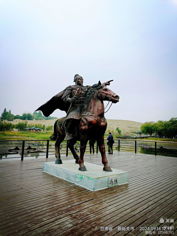 (图片:明朝征西将军冯胜铜像,关城历时168年建成,冯胜为最终的决策者)
